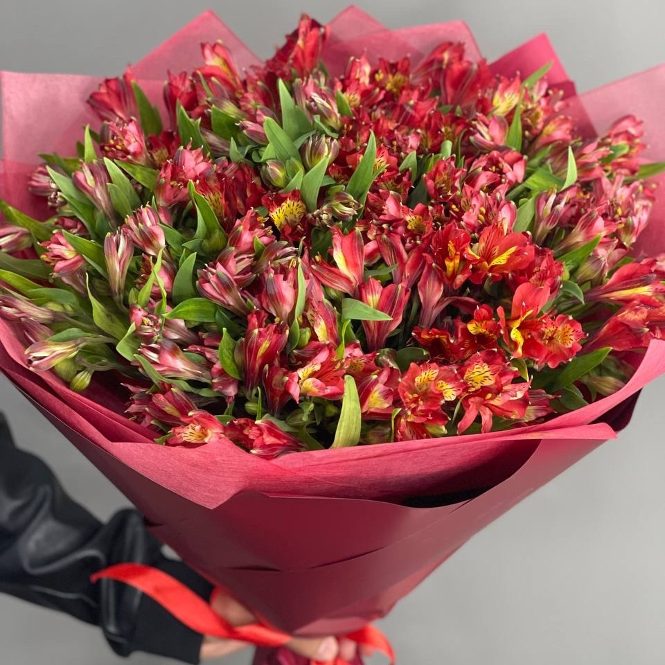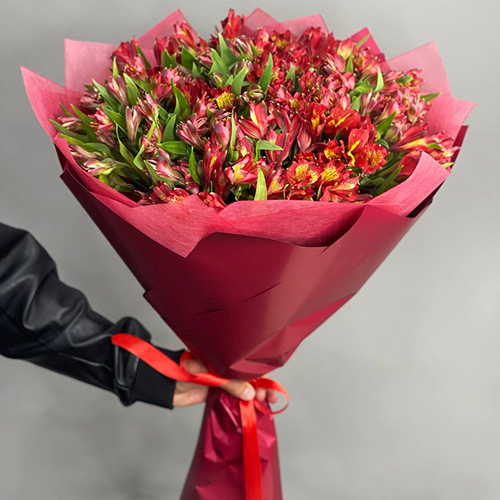 Монобукет из 25 красных альстромерий