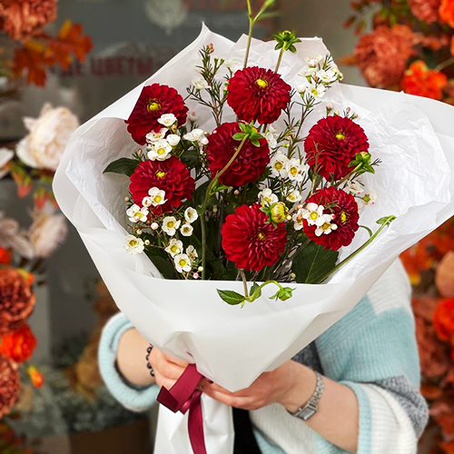 Букет "Марс" из георгин и хамелациума