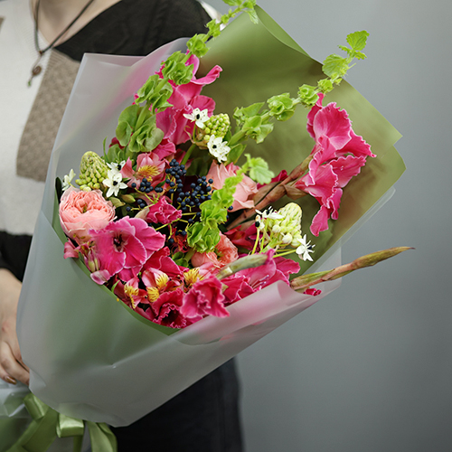 Заказанный букет вы можете забрать у нас в магазине по адресу: Москва: ул. Большая Семеновская 11с3 - с 7:00 до 24:00!