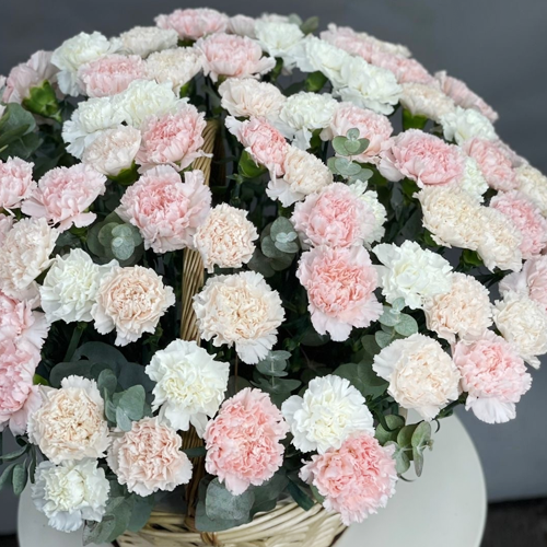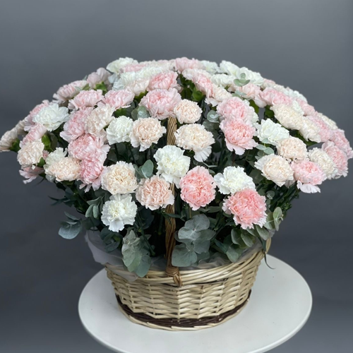 Композиция в корзине из 101 диантуса микс
