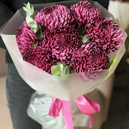 Букет "Виноградный" из 7 хризантем Бигоуди