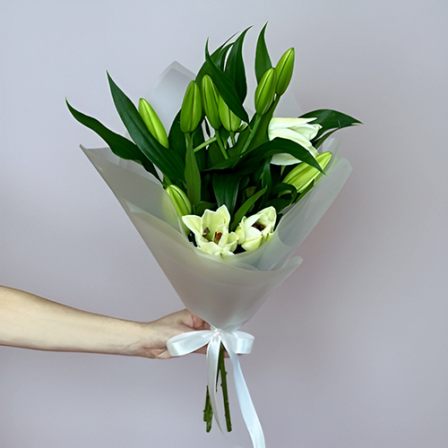 Монобукет из 3 белых лилий