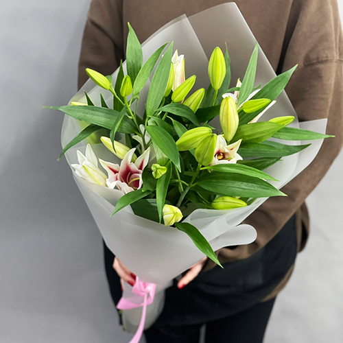 Заказанный букет вы можете забрать у нас в магазине по адресу: г. Жуковский, ул. Чкалова, 38а - с 7:00 до 24:00!