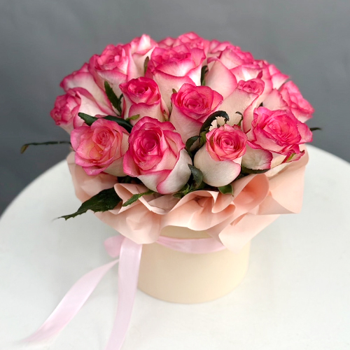 Композиция в шляпной коробке из 19 роз Джумилия