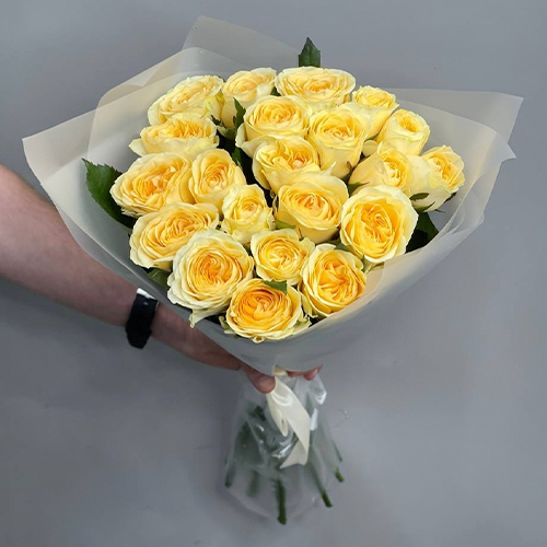 Букет из 21 из пионовидной розы Баттеркап (60 см)