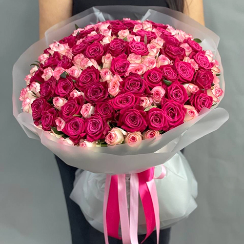 Букет из 101 розы Шангрила и Джумилия микс (50 см)