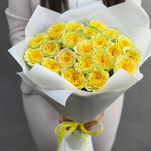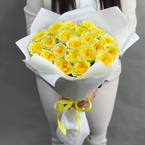 Букет из 25 лимонных пионовидных роз (50 см)