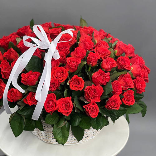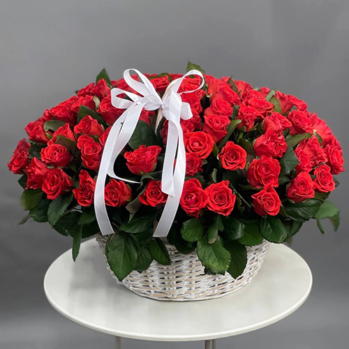 Композиция в корзине из 101 розы Эль Торо (50 см)
