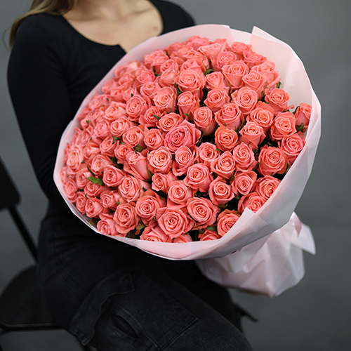 Букет 101 коралловая роза (70 см)