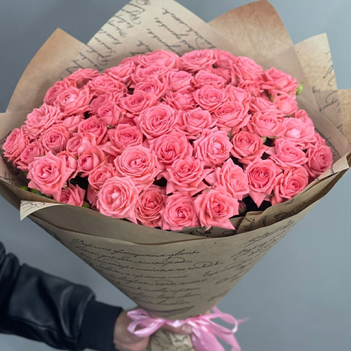 Букет из 15 кустовых коралловых роз (60 см)