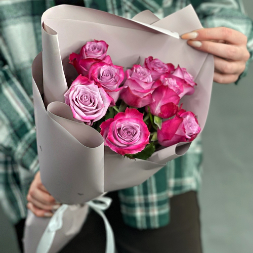 Букет "Сесилия" из 9 фиолетовых роз кения (40 см)