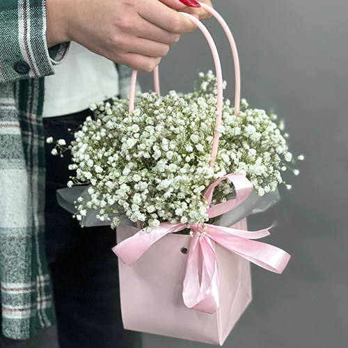 Композиция в сумочке из гипсофил